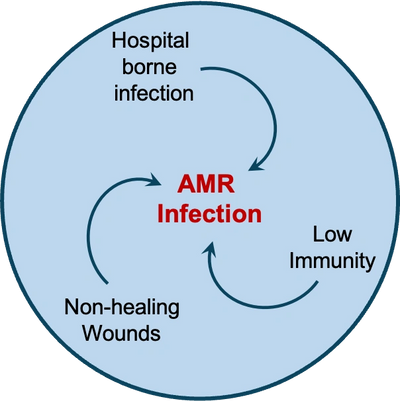 As per an estimate, by 2050 death rate of AMR may surpass the deaths caused by cancer in today’s date. Unfortunately, efforts to develop new antimicrobials over the past two decades have been woefully behind the rapid evolution of pathogenic bacteria. It is observed that the incidents of AMR infections are higher in the population with weak immunity and exposure to healthcare associated infections. One such group is diabetic individuals.